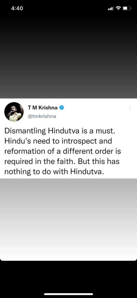 It all started with this one Twitter posting of TM Krishna that was widely circulated on social media a few days ago: