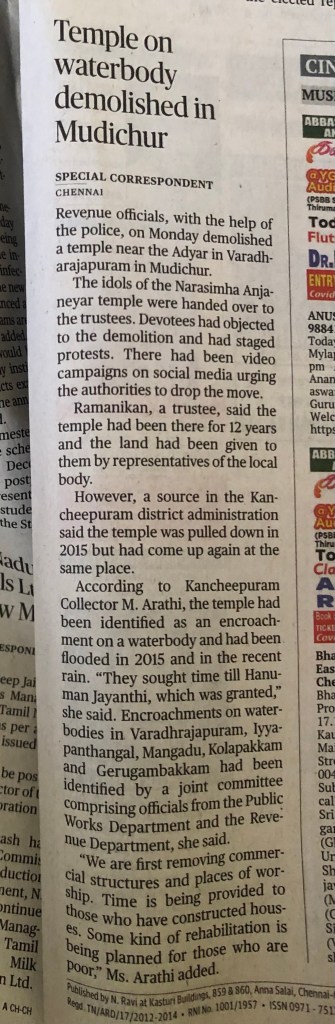 IF THE MUDICHUR RAMAR TEMPLE DEMOLISHED YESTERDAY (December 10, 2022) WAS AN UNAUTHORISED ENCROACHMENT ON A CITY WATERBODY, PERHAPS ONE MAY ASK IF THE VALLUVAR KOTTAM, A TOURISTIC PUBLIC SPOT NOW BUT ERECTED BACK IN 1975-76 RIGHT IN THE HEART OF THE CITY WAS AUTHORISED ENCROACHMENT?