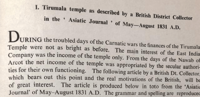 What the British administrators went about doing to effectively dismantle and “reform” age-old traditional order and practices in the temple at Tirumala, and how such so-called “reforms” amounted to nothing more than rampant “asset-stripping” and “revenue-gouging” had been recorded by the British historians and journalists, although not without much obfuscation and bias, quite unabashedly. References to their own rapacity in destroying the net-worth of the temples were more in the nature of footnotes to history rather than history told as it truly was. It was all glossed over very often as no more than minor aberrations that had occurred in the normal course of administering a vast country and population as India’s.