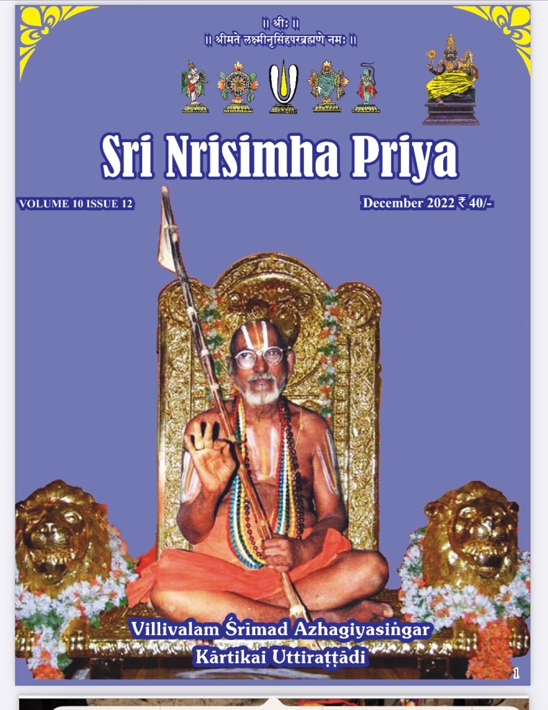 The First, Second , Third and Fourth Parts of the translation was published in the August, September, October and November 2022 issues respectively of “NRISIMHA PRIYA”, the English edition of the Journal of Sri Ahobila Muttam. They can all be accessed on the links below: