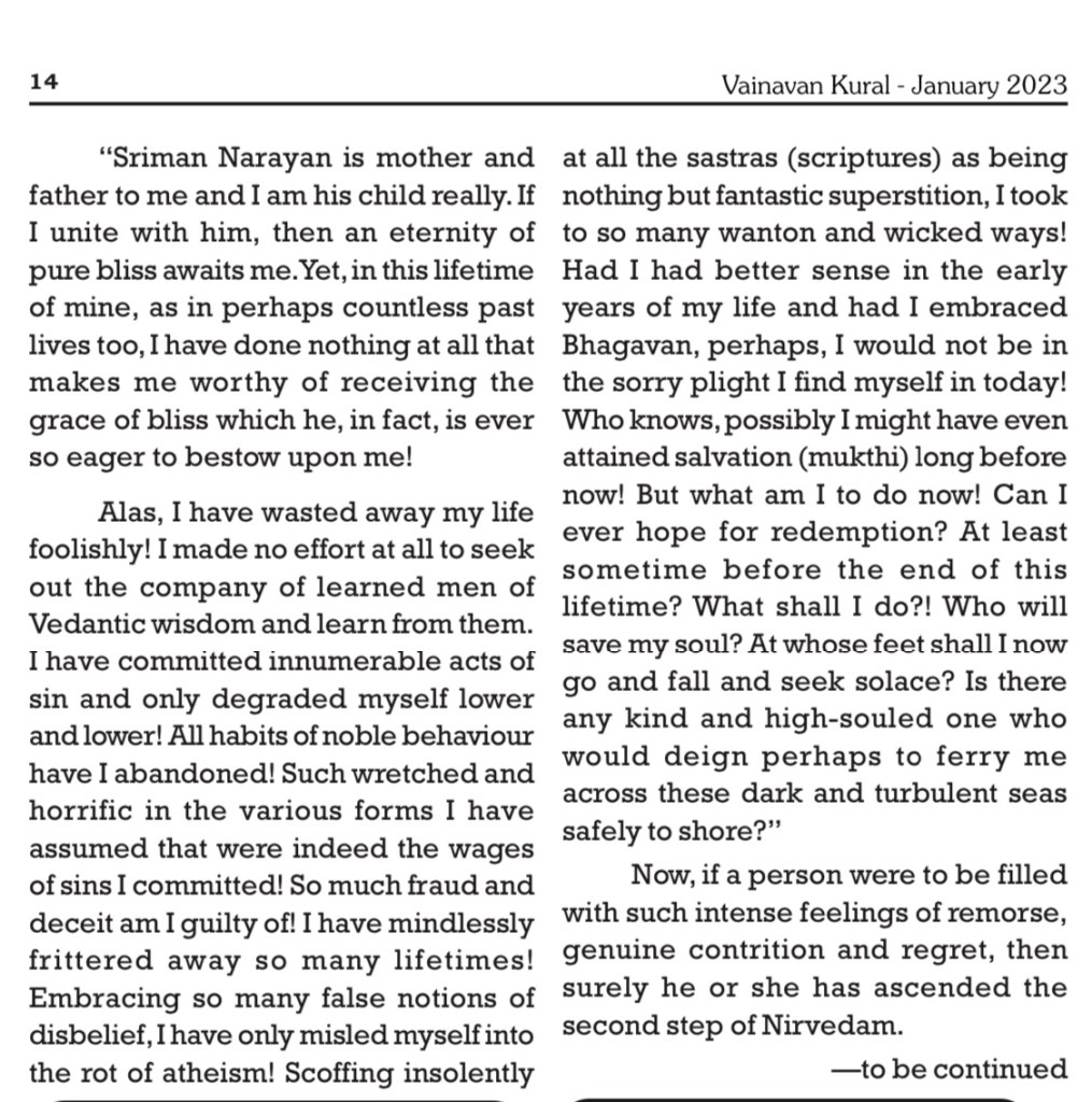 Part-2 of this English translation will be published in the February 2023 issue of “Vainavan Kural” magazine (English version).