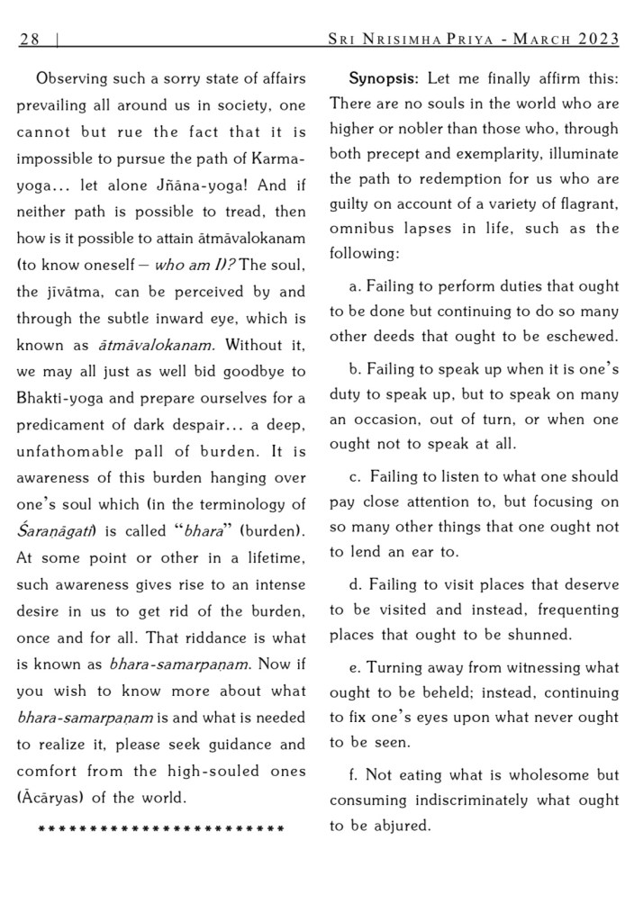 It is my privilege to translate into English the epistle (“arul mozhi”) on “Praise the high-souled” written in Tamizh by HH Mukkur Azhagiyasingar. Part-1 in this series published in “Nrisimha-Priya (English) ” appeared earlier in the Feb 2023 issue which can also be accessed below by readers of Part-2 that has now been published in the March 2023 issue being reproduced further below .