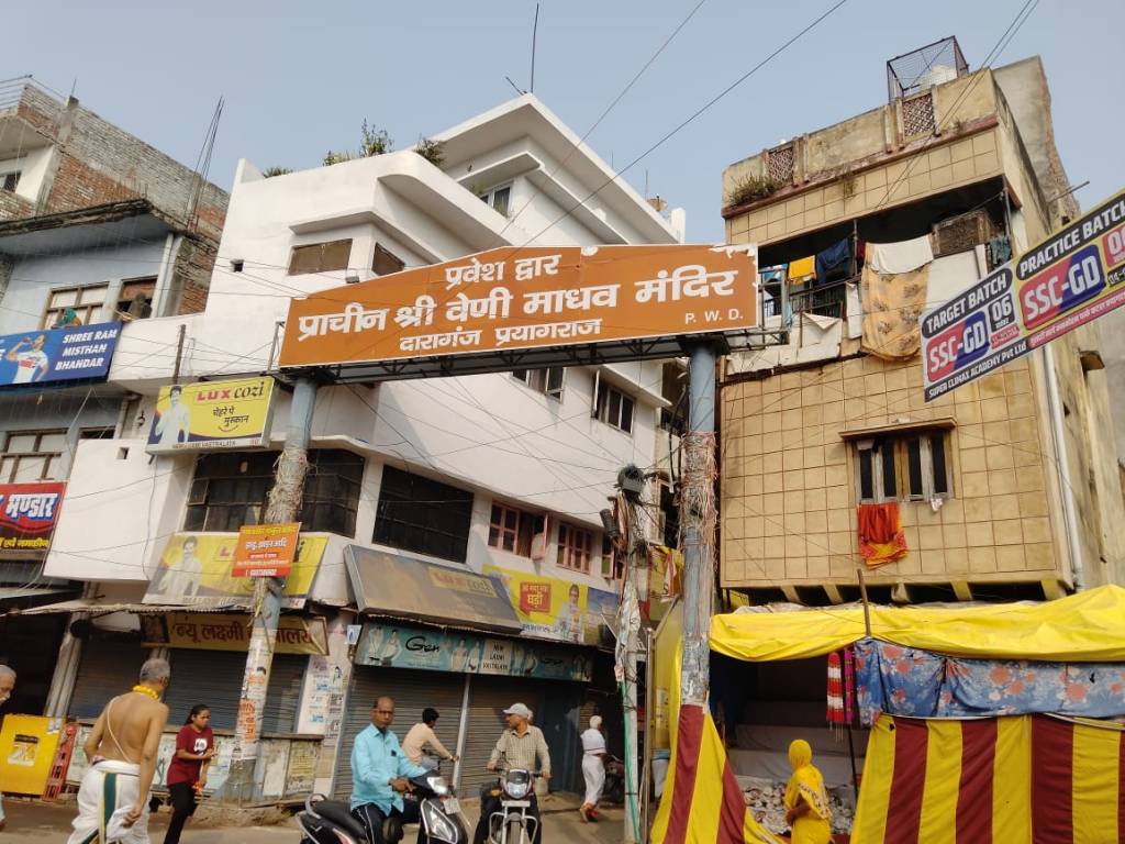 Before we had sailed by boat to Triveni-sangam from the the house of Sri.Vasudevan Sastri, we had stopped at and offered prayers to the Deity at the famous Veni Madhava temple where the presiding deity is Vishnu.