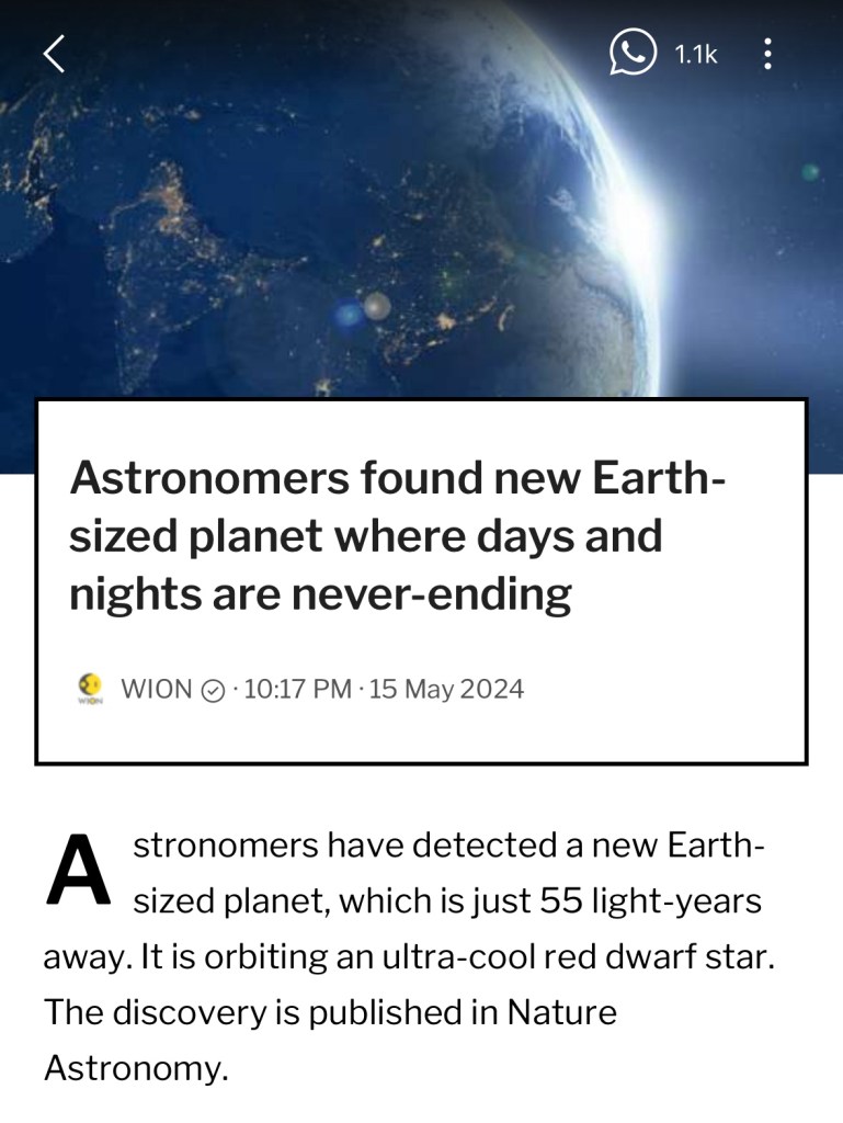2. Astronomers found new Earth-sized planet where days and nights are never-ending!