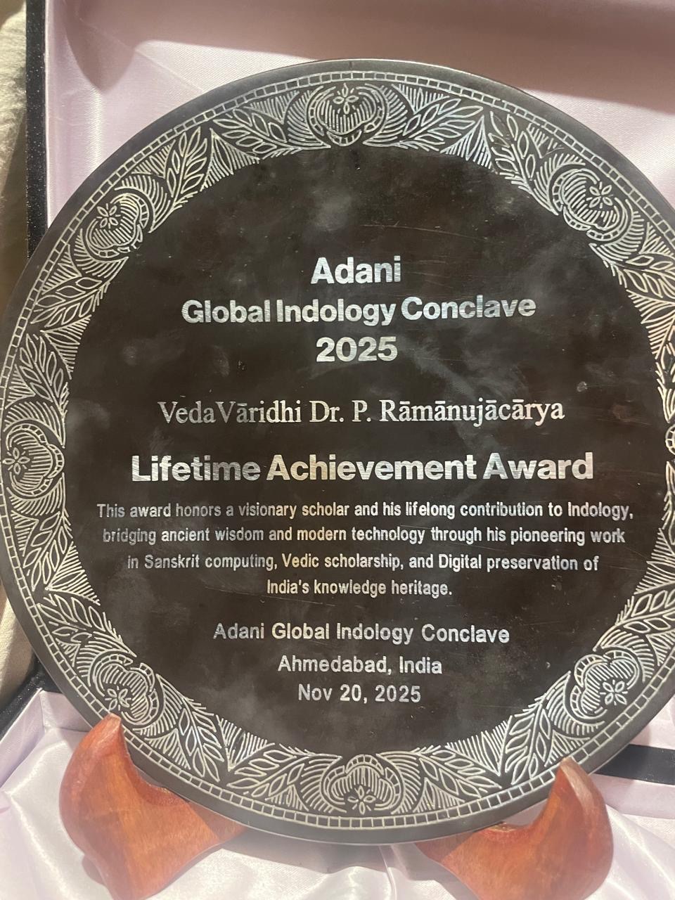 It is a matter of great pride and delight that U. Ve. Sri Sohathur Ramanujacharya Swamin , the renowned ubhaya vedantin scholar has been recognised for his monumental contributions in Sanskrit to preserving and propagating Vedic and Sampradaya knowledge, philosophy, literature and scriptures through the Institute he himself established in Bangalore. The Institute named “ParankushacharContinue reading “ADANI GLOBAL INDOLOGY CONCLAVE 2025 : “Lifetime Achievement Award” conferred on “Veda Vaaridhi” Sri.U.Ve. Sohathur Dr.P. Ramanujacharya (Asthana Vidwan of Sri Ahobila Mutt)”