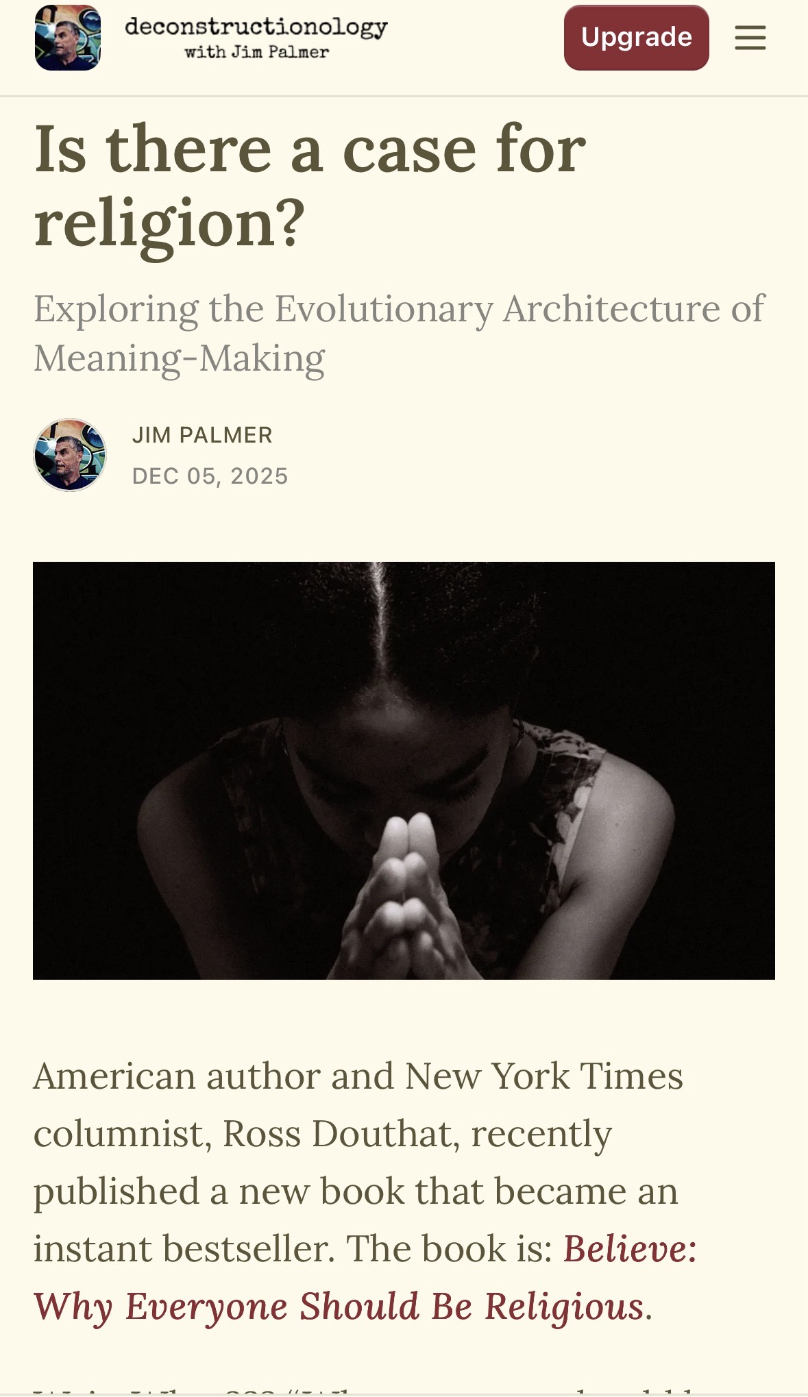 https://open.substack.com/pub/jimpalmerauthor/p/is-there-a-case-for-religion?utm_campaign=post&utm_medium=email I read the Op-Ed above with amused interest… interest because matters of Religion always have stoked my curiosity; and amused because I’m reminded of two old sayings — “The more things change, the more they remain the same” and “What goes round always comes around”. Religion went out of fashion and favour for theContinue reading ““Is there a case for Religion?”: Well… no, not to India and not in the Western sense”